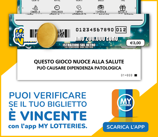 Utilizza l’App My Lotteries, l’unica App Ufficiale per il Gratta e Vinci per essere sicuro dell’esito del tuo biglietto.