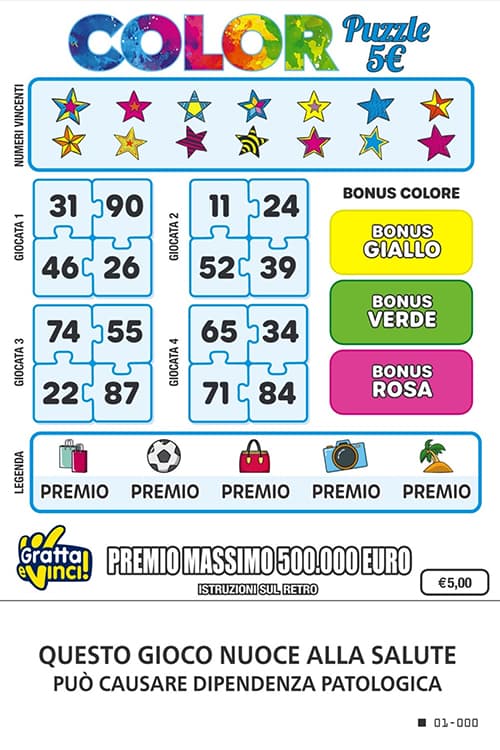 Color Puzzle 5€, è il nuovo Gratta e Vinci da 5€ colorato. Scopri I NUMERI VINCENTI.