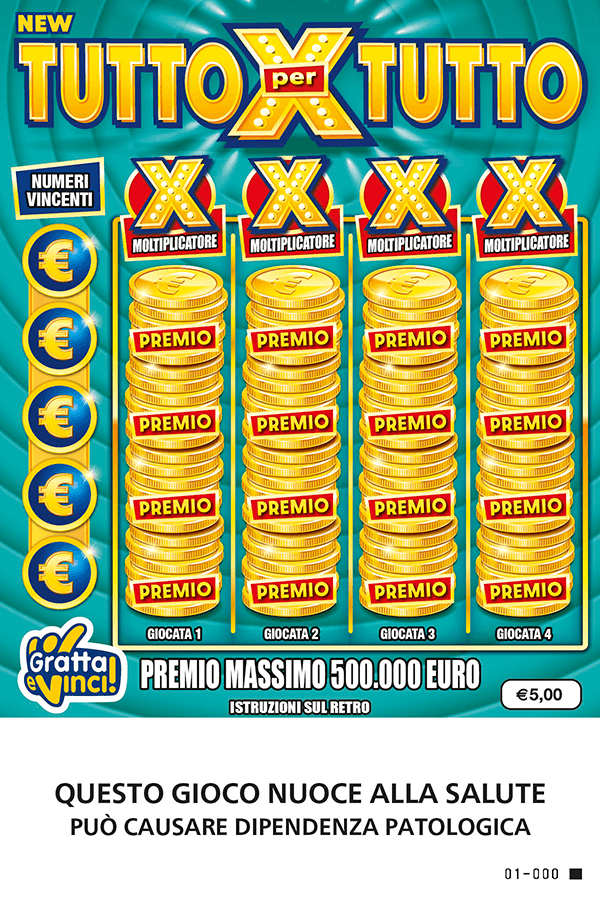 New Tutto per Tutto è il nuovo biglietto Gratta e Vinci da 5 € con premio massimo pari a 500.000€.