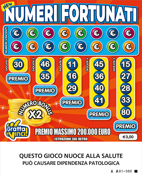 Numeri Fortunati da 3€ si rinnova e diventa NEW. Il biglietto presenta una nuova grafica ricca di colore e il nuovo bonus X2, che raddoppia il tuo premio.