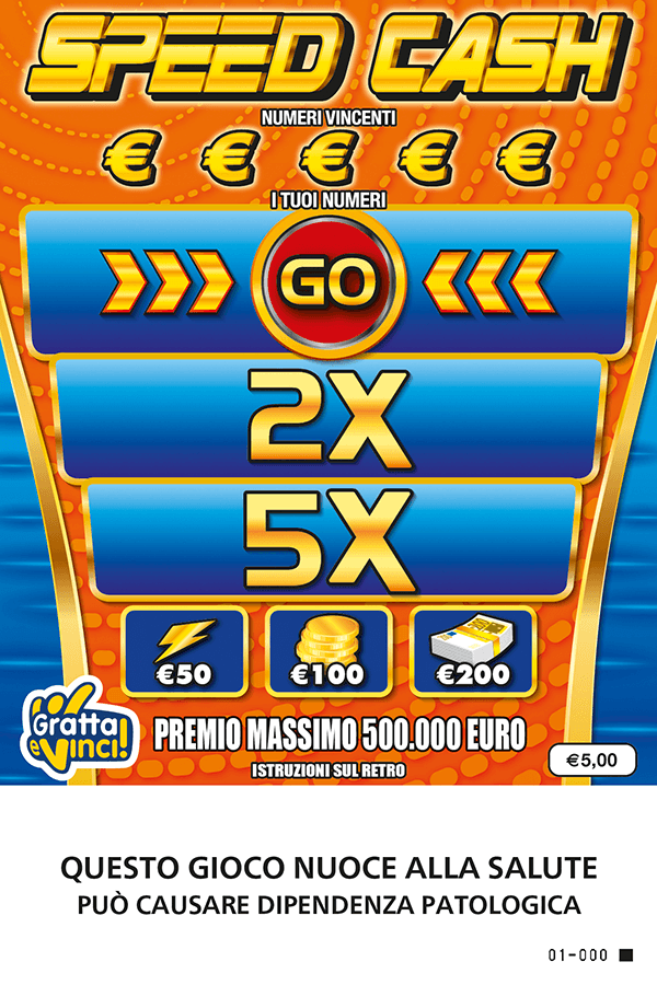Speed Cash è un biglietto Gratta e Vinci da 5€ con premio massimo 500.000€.