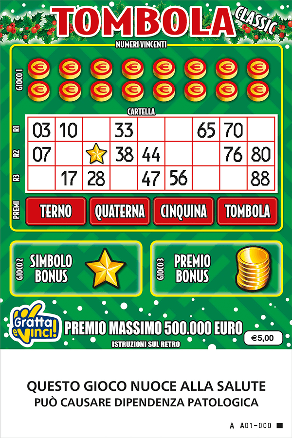 Tombola Classic è il nuovo biglietto da 5€ della famiglia dei biglietti di Natale.