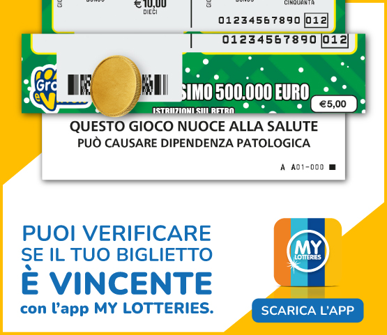 Utilizza l’App My Lotteries, l’unica App Ufficiale per il Gratta e Vinci per essere sicuro dell’esito del tuo biglietto.