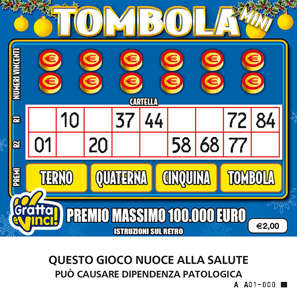 Tombola Mini è il biglietto da 2€ della nuova famiglia dei biglietti di Natale.
