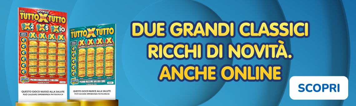 Le novità non sono finite e interessano anche la versione Bonus del gioco: New Bonus Tutto per Tutto da 10€ presenta l’aggiunta di un Bonus X2 rispetto alla versione precedente, una novità che rende la dinamica di gioco ancora più appassionante e ricca di sorprese. Come per la versione classica di New Tutto per Tutto, anche la struttura premi di New Bonus Tutto per Tutto ha subito delle modifiche e può essere consultata dai giocatori in qualsiasi momento.