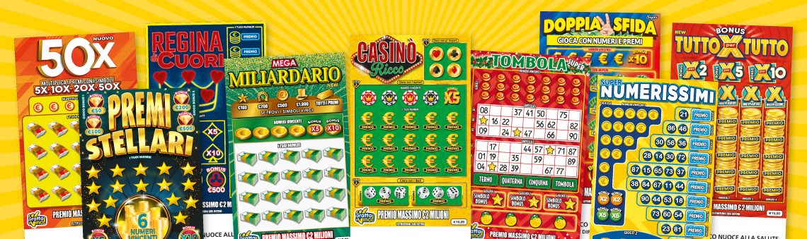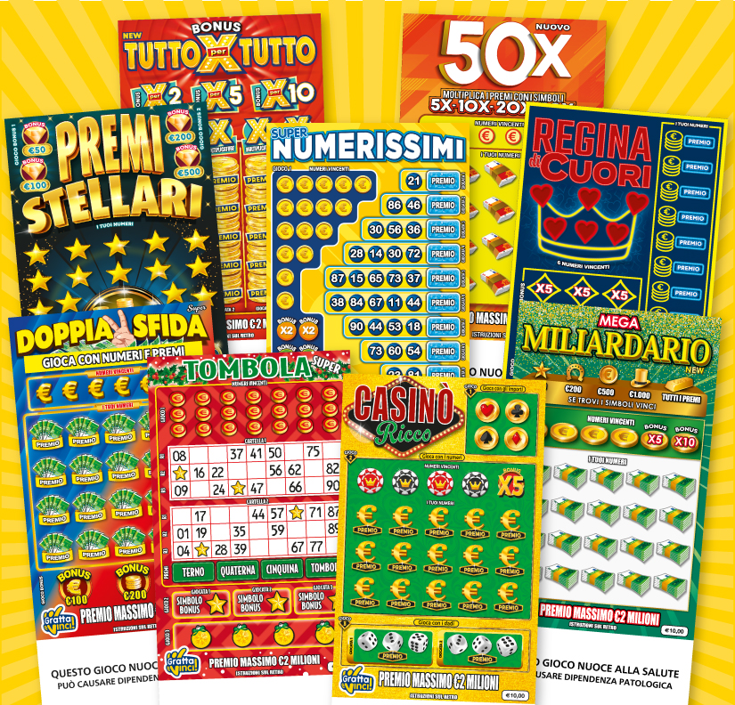 Tra i tanti tipi di biglietti in commercio, i Gratta e Vinci da 10€ vengono apprezzati dal pubblico soprattutto per le molteplici meccaniche di gioco e per i premi, che permettono di ottenere sino a 2.000.000€. Se si opta per un Gratta e Vinci da 10€, si potrà scegliere fra le seguenti alternative:
