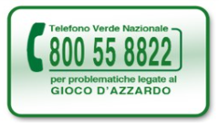 Telefono Verde Nazionale per le problematiche legate al gioco d'azzardo (TVNGA) messo a disposizione dall'Istituto Superiore di Sanità.