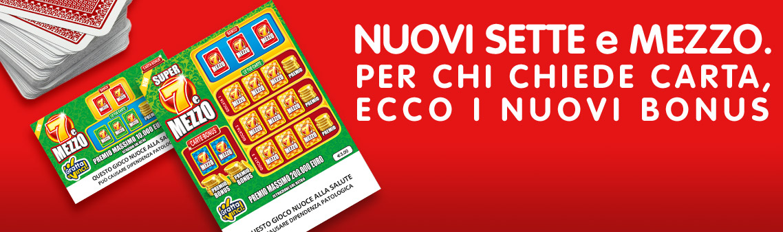 La linea Sette e Mezzo è nata dal desiderio di Gratta e Vinci di dare nuova linfa vitale ad un gioco molto apprezzato nel nostro Paese: ecco quindi che a partire dal 2013 sono nati i primi biglietti cartacei e successivamente è stata messa a disposizione l’opportunità di giocare online.